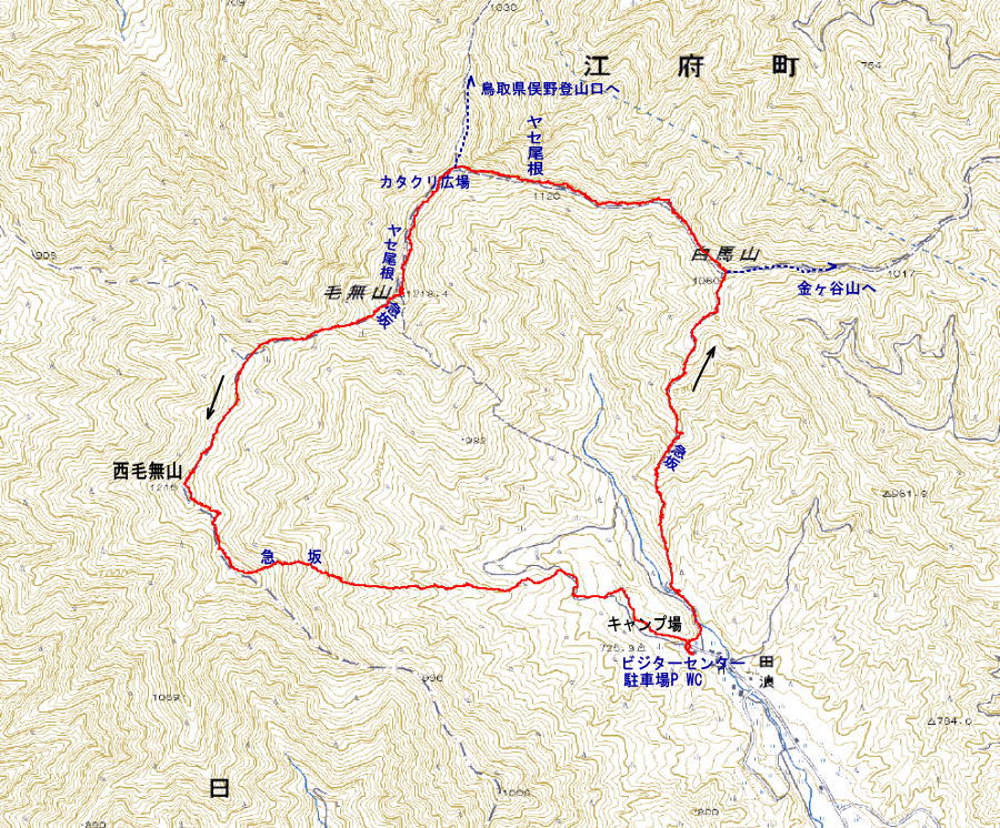 白馬山1060m-毛無山1212m-西毛無山1210m 歩行時間(周回):4時間20分 歩行距離:8.7km
