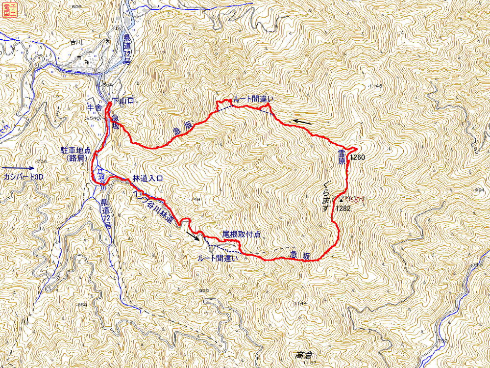 くらます1282m 登り2時間55分 下り:2時間5分 歩行距離:7,8km
