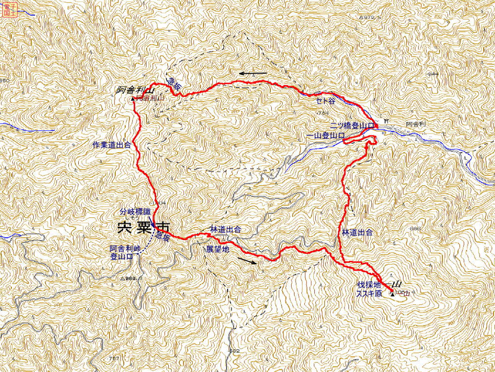 阿舎利山1087m-一山1064m(周回) 歩行時間:4時間 歩行距離:8.5km