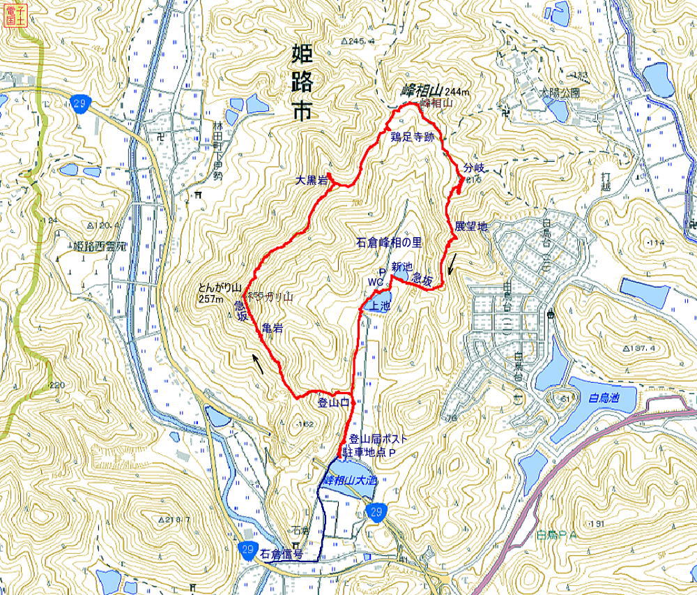 とんがり山257m-峰相山244m(周回) 歩行時間:3時間5分 歩行距離:5.5km