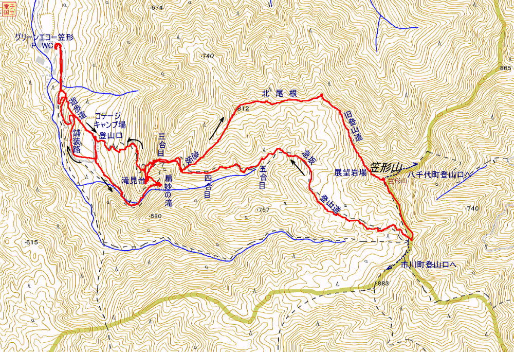 笠形山939m 歩行時間(グリーンエコー駐車場から) 登り:3時間 下り:2時間10分 歩行距離:9.5km