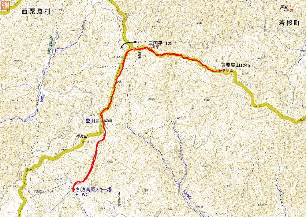 三国平1128m-天児屋山1245m 歩行時間 登り:2時間40分 下り:2時間 歩行距離:10.1km