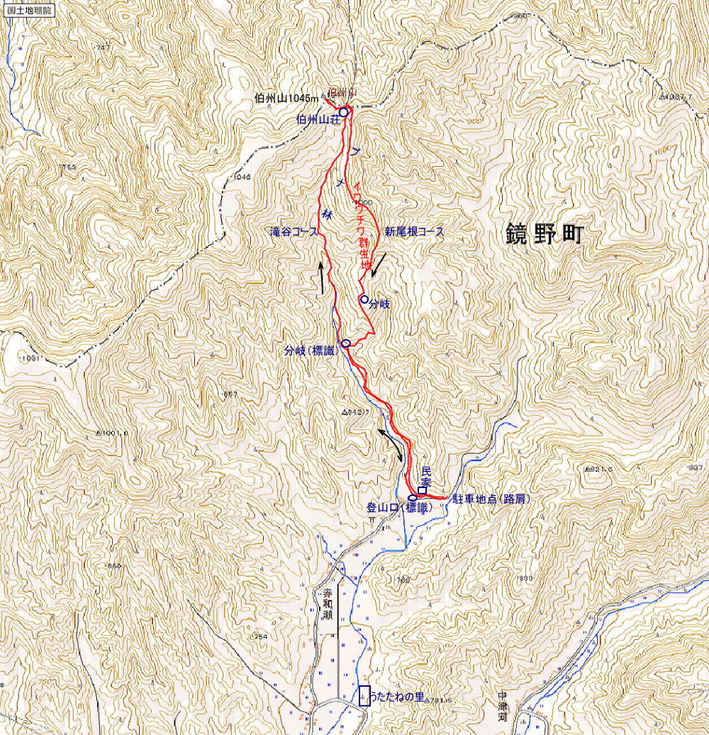 伯州山1045m 歩行時間 登り:1時間10分 下り:1時間10分 歩行距離:5.2km
