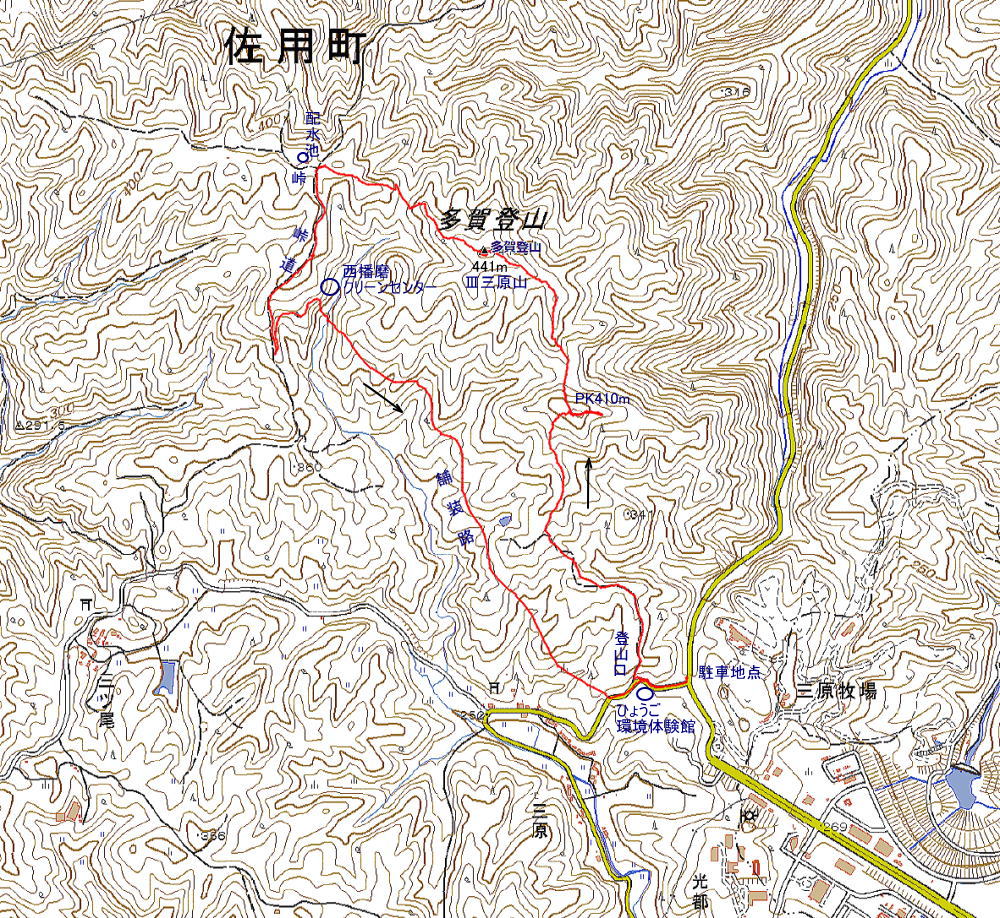 多賀登山441m 歩行時間 登り:50分 下り:50分 歩行距離:5.1km