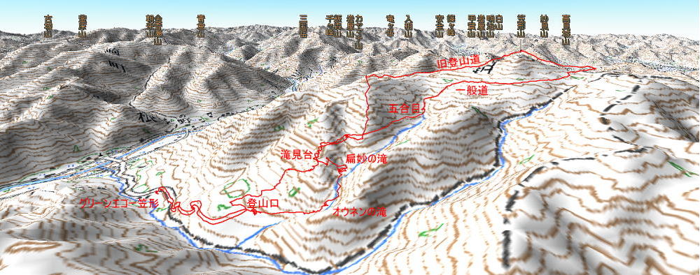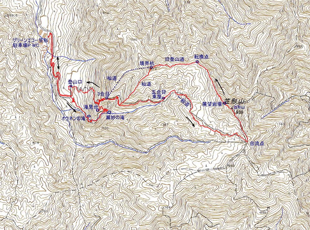 笠形山939m(周回) 歩行時間 登り:2時間40分 下り:1時間50分 歩行距離:9.8km
