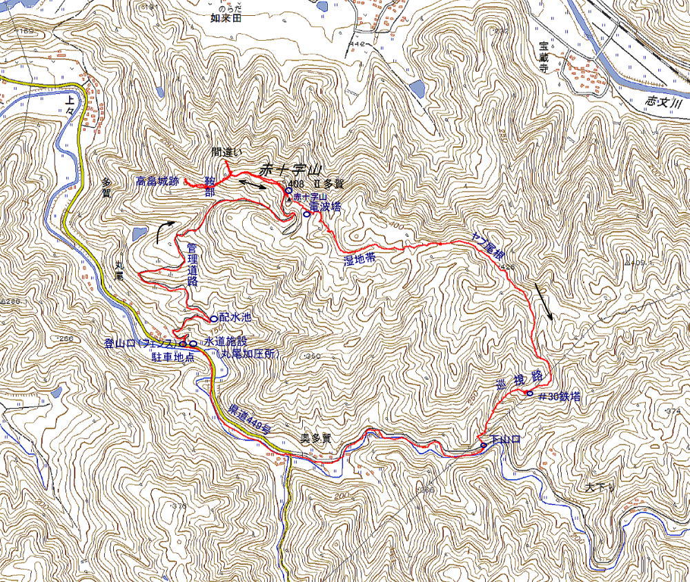 赤十字山408m(周回) 歩行時間 登り:45分 高畠城跡往復:45分 下り:2時間 歩行距離:8.4km