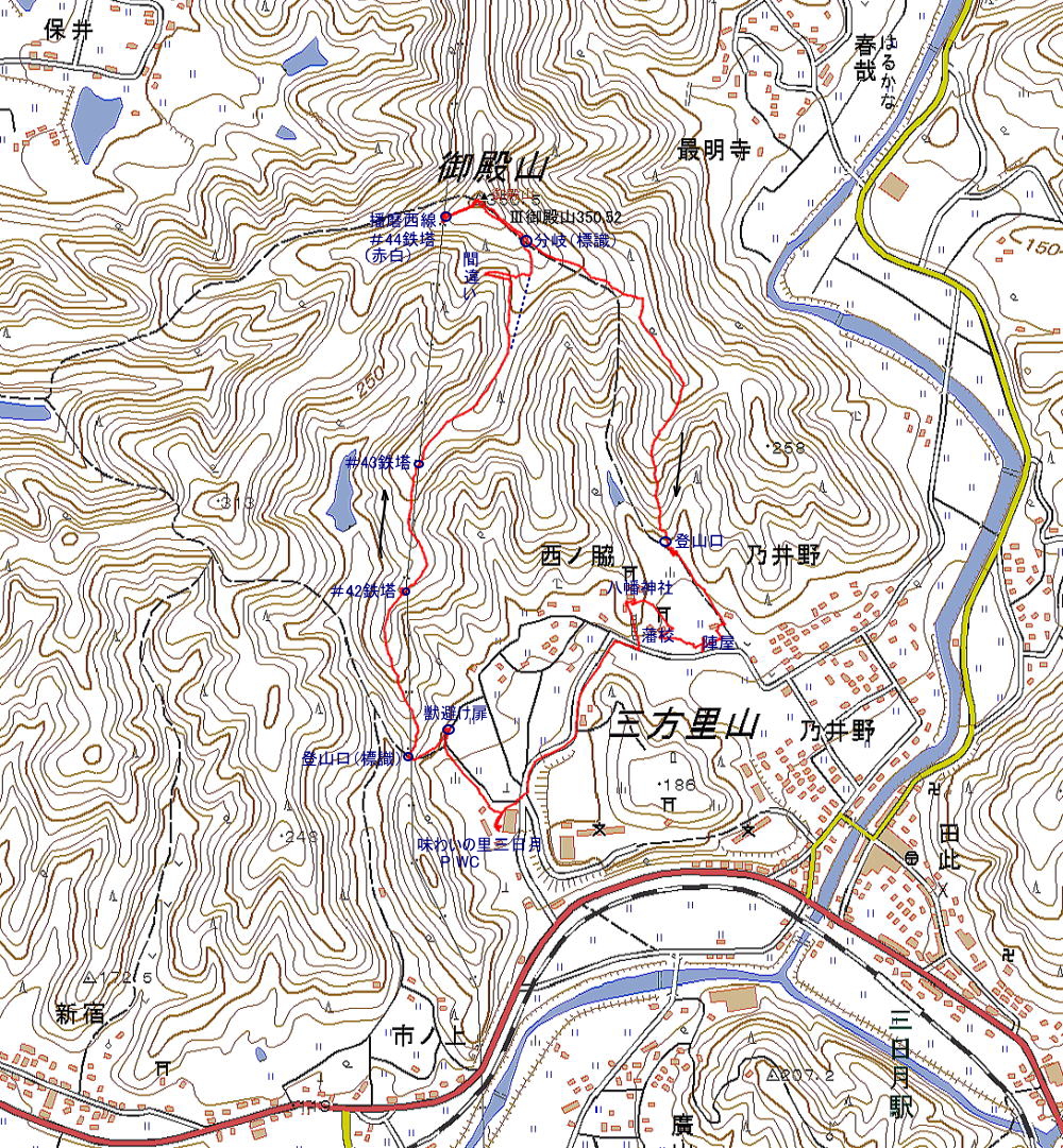 御殿山350m 歩行時間 登り:50分 下り:50分 歩行距離:4.3km