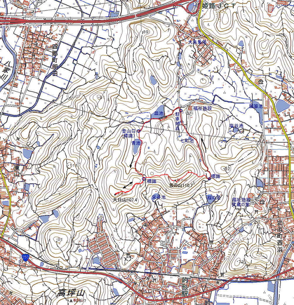 大日山107m-坂の山110m 歩行時間:1時間5分 歩行距離:2.8km