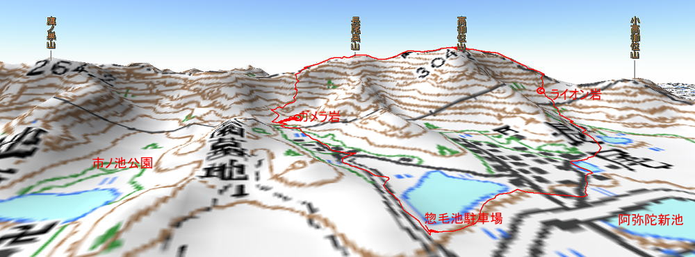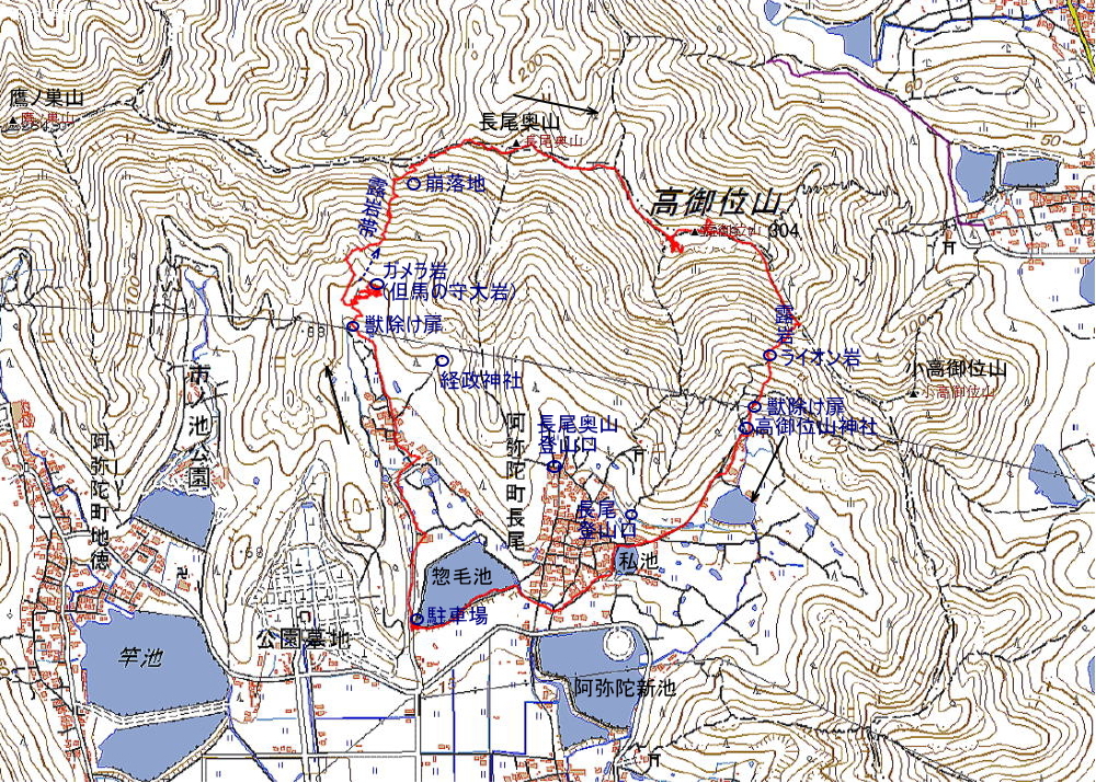 高御位山304m 歩行時間 登り:2時間30分 下り::1時間 歩行距離:4.6q