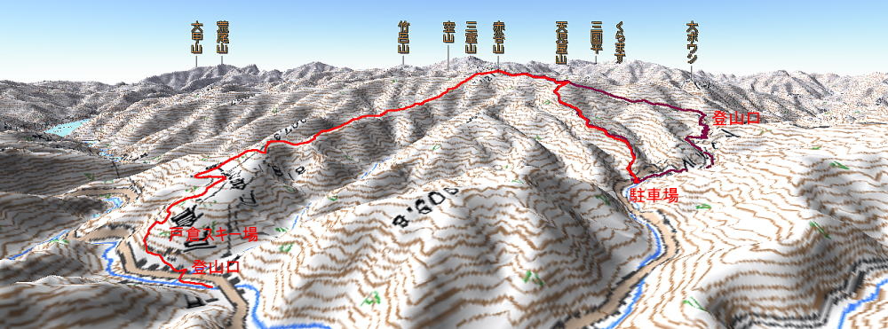 赤谷山 歩行時間 登り:2時間25分 下り:2時間10分 歩行距離:7,4q