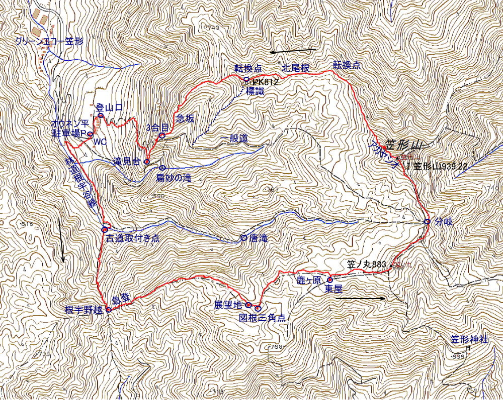 笠形山639m 歩行時間 登り:3時間 下り:1時間30分 歩行距離:7,7q