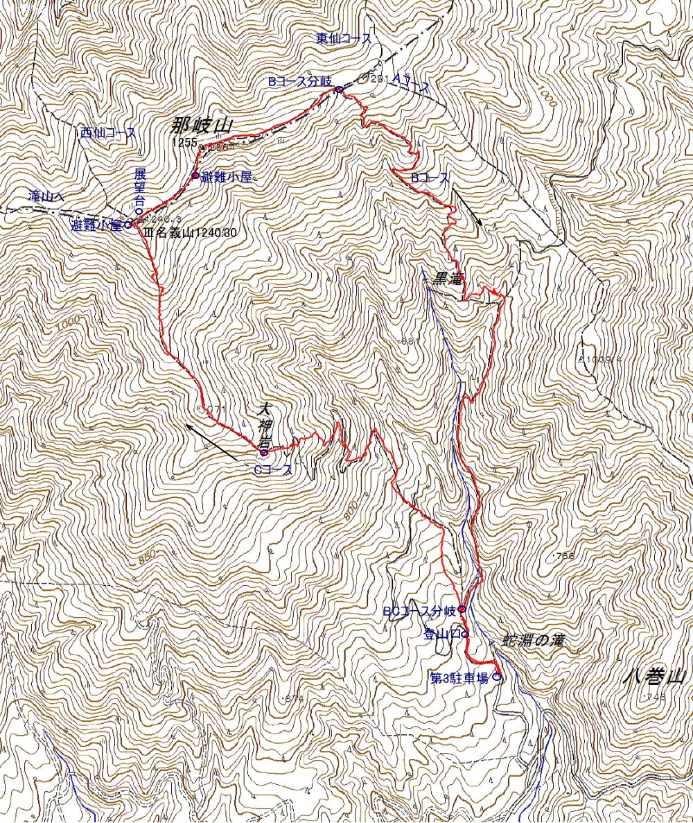 那岐山1255m 歩行時間 登り:2時間30分 下り:2時間10分 歩行距離:7,5q