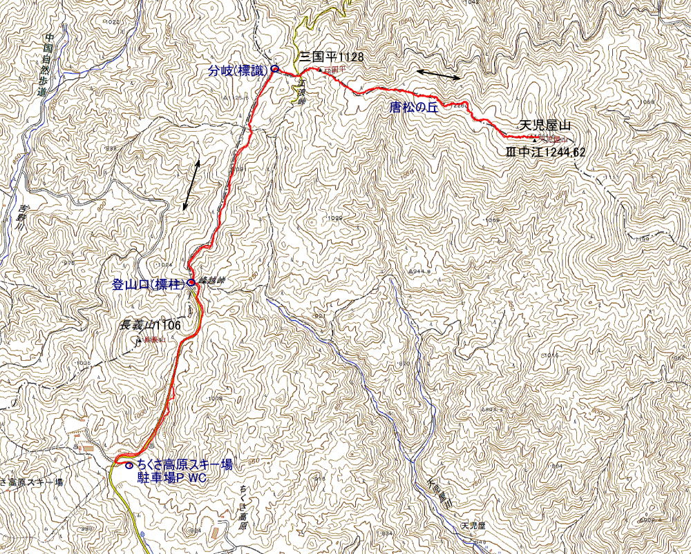 三国平1128m‐天児屋山1245m 歩行時間 登り:3時間 下り:2時間 歩行距離:10,3q