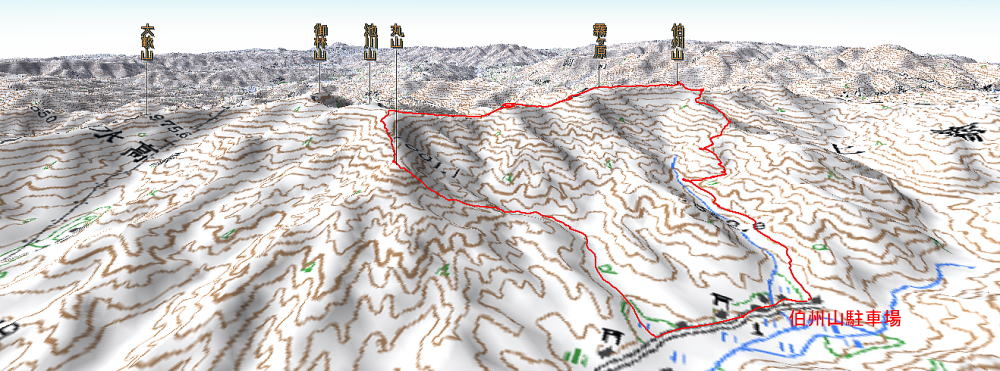 丸山951mー白州山1045m(周回) 歩行時間:3時間50分 歩行距離:8.1q