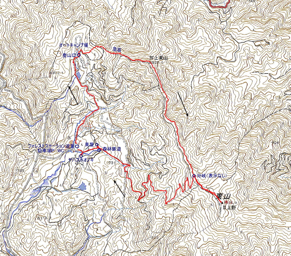 東山1016m 歩行時間 登り:2時間 下り:1時間10分 歩行距離:7,0q