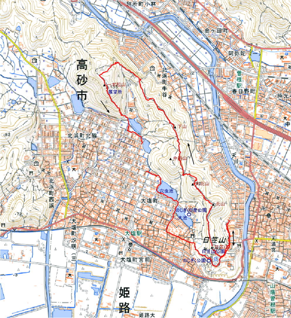 日笠山60mー一本松135m 歩行時間:2時間30分 歩行距離:6.5q