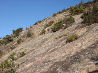 グリップの効く岩なので滑ることはないが見下ろすとかなり怖い。