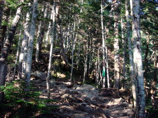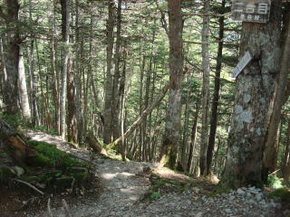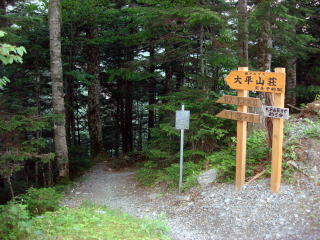 | 大平山荘の前を通るとすぐシラビソ林の登山道になる。 | |||