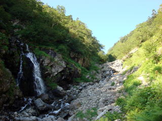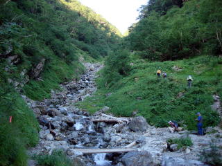 | 約1時間で沢沿いの道になる。 | |||
