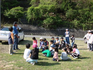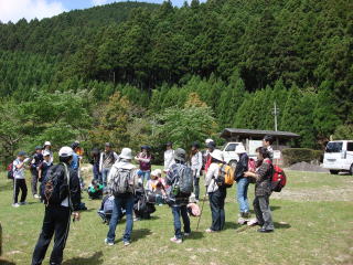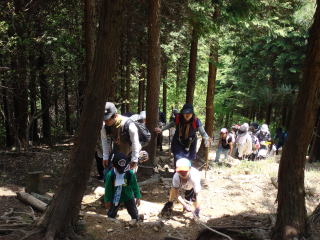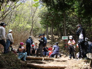 | 14時20分:全員が登山口に下山。小さい子は下りの方が手古摺るようで、登りより時間がかかっていた。 | |