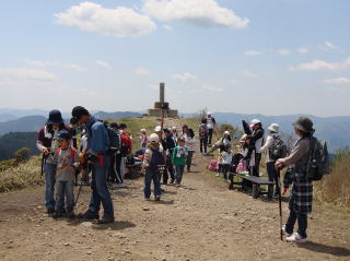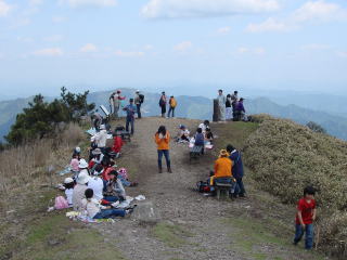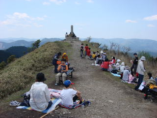 | 12時20分:一人のリタイヤもなく全員山頂に到着。到着した途端に広がる360度の大展望に一同感激。 苦労して得た山頂の景色は、登ったものだけが味わえる達成感を伴って格別である。 |
