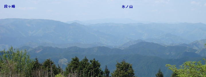 | 北西には段ヶ峰の長い稜線と、その右手に氷ノ山の長い稜線が薄っすらと見える。 | |