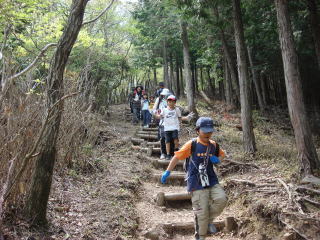 | 今日で3回目の登山教室だが、やはり1000mの山になると小さい子には流石にハードだ。 しかし、感想を聞くと、”しんどかったけど楽しかった””またのぼりたい”と皆やる気十分だった。 |