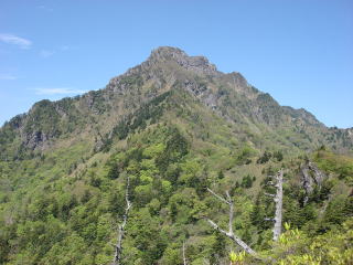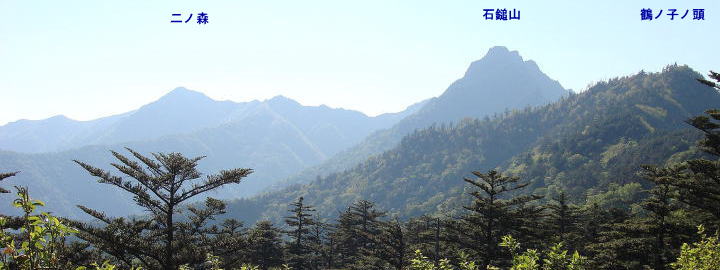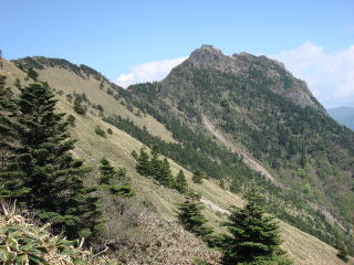 | ニノ森に向かって進みながら振り返ると、石鎚山がいろんな形に変わっていくのが面白い。 | |