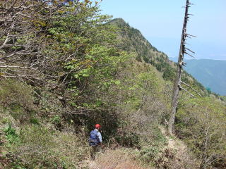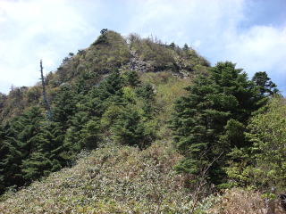 | やや急登な尾根道を登りきると山頂か、という思いを3度して、12時40分、ようやく二ノ峰山頂に到着。 | |