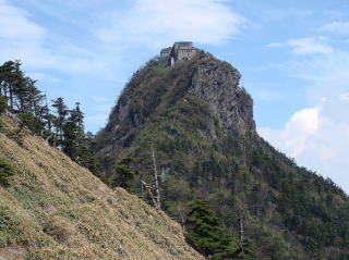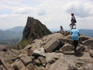 | 10時50分:石鎚山山頂の弥山に到着し、とりあえず天狗岳を眺める。 | |