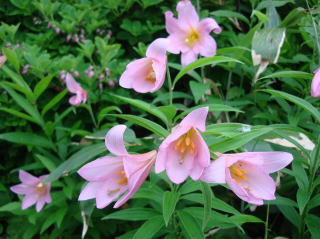 ヒメサユリが満開の気持ちのいい稜線歩きが始まる。