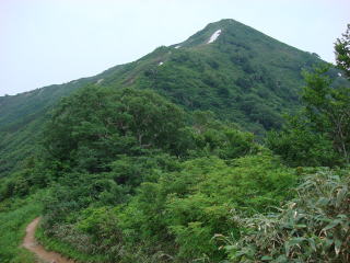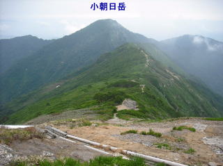 前方にようやく小朝日岳から大朝日岳への稜線が見えてきた。