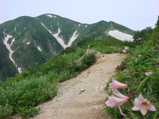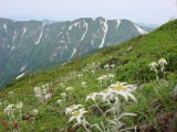沿道にはヒメサユリが咲き誇り、山頂付近のウスユキソウをはじめいろんな花が行く先で迎えてくれた。