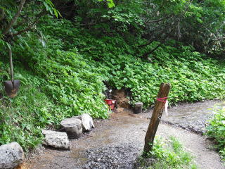 素晴らしい展望を満喫して、9時20分から下山。まず、銀玉水で冷たい水を頂いて元気を得る。