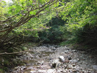 10分ほどで沢筋にぶつかったが、ここが難行苦行の末、9時間かかって登ってきた沢登りの終点とのこと。