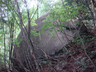 名前どおりのオニギリの形をした岩の横を通り、少し下るとザレ場の急坂。