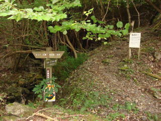 しばらく沢沿いの細い道が続き、急坂を下ると牛コバに到着。