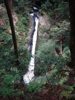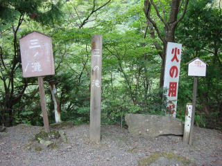 三の滝の表示が出てきたので見に降りると、水量豊富な滝が豪快な音を立てて流れ落ちていた。