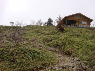 そしてまた1時間近くひたすら歩きつづけると、ようやく山頂避難小屋が見えてきた。