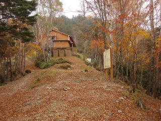 後山林道入口に着くと、崩落復旧工事のため来年1月末まで通行止めの看板が立っていた。