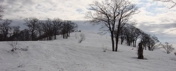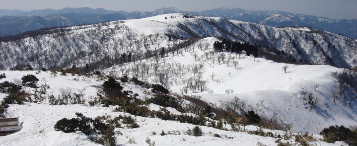 気温が高いので時間の経過とともに雪が緩み、下山の方が疲れた雪山登山だったが、氷ノ山の広々と