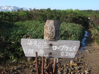 | 6日夜9時にフェリーが小樽港へ到着すると、すぐに道央自動車道で旭川へ向かった。 殆ど車が走っていない道を順調に飛ばし、深夜0時過ぎに旭川温泉ロープウエイ前無料駐車場に到着。 6時の始発ロープウエイで山上の姿見駅へ。 |