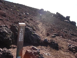 | 9合目まで来ると傾斜が緩やかになり、すぐに山頂に到着。 姿見駅のひょうこうが約1600mだったので、標高差約700mを1時間40分で登ってきたことになる。 |