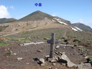 | 標識がなければ何処が山頂かわからない間宮岳を通って、中岳への分岐を裾合平方向へ下っていく。 | |||