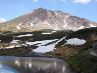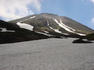 | 旭岳は登りのルートで見たのと全く違う姿をしている。 | |||
