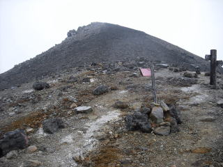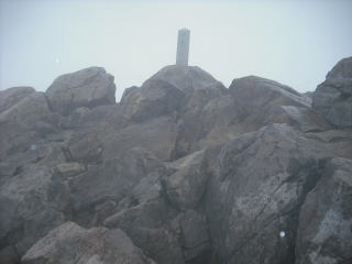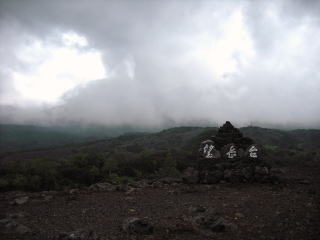 山頂到着と同時にガスがたちこめはじめると、あっという間に視界がと閉ざされてしまった。