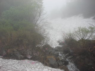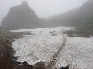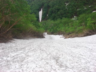 | 40分ほど歩いていると、再び雪渓が現れた。 | |||