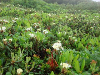 | シャクナゲの群生地を通って、再びガレ場を登っていく。 | |||