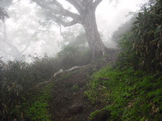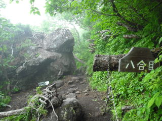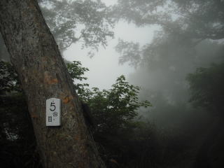 | 4合目あたりからガスで視界が閉ざされていく。 | |||
