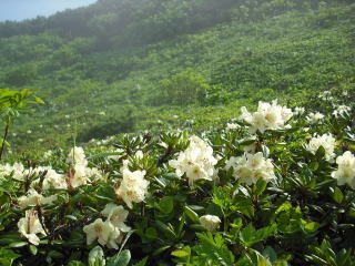 | 9合目を過ぎるとキバナシャクナゲのお花畑が広がっていた。 | |||